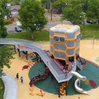 大型户外火箭组合式滑梯在公共公园、幼儿园、学校和儿童乐园等场所广泛应用。以下是该滑梯的一些特点和未来发展前景: